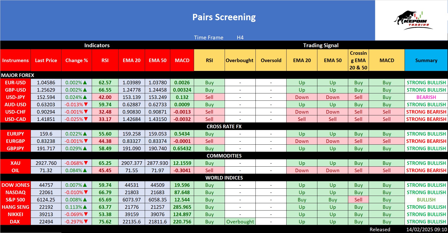 - Analisa: RSI 61.90, mendekati overbought. Semua indikator menunjukkan sinyal beli.