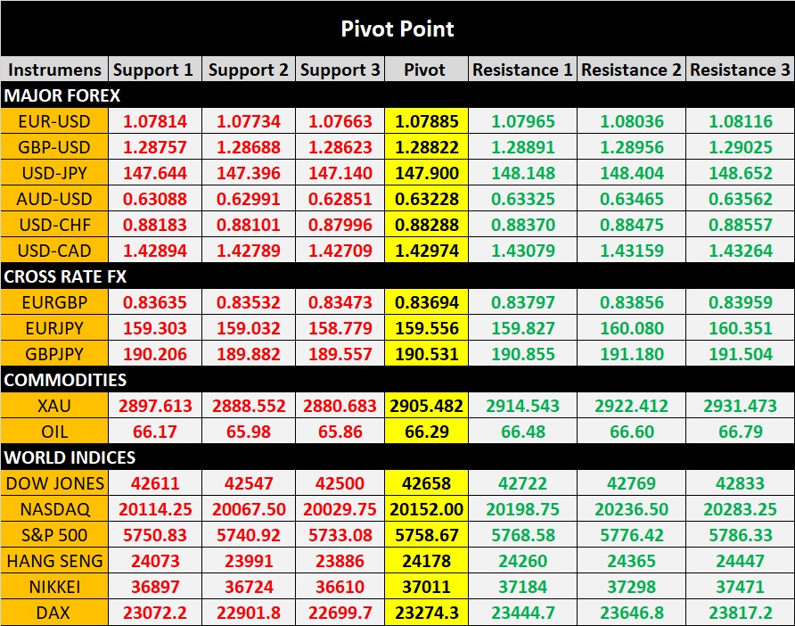 • Rekomendasi: Potensi reversal jika harga mendekati 147.3 – 147.5. Bisa mempertimbangkan buy dengan target 148.4 – 148.6, stop loss di bawah 147.0.
