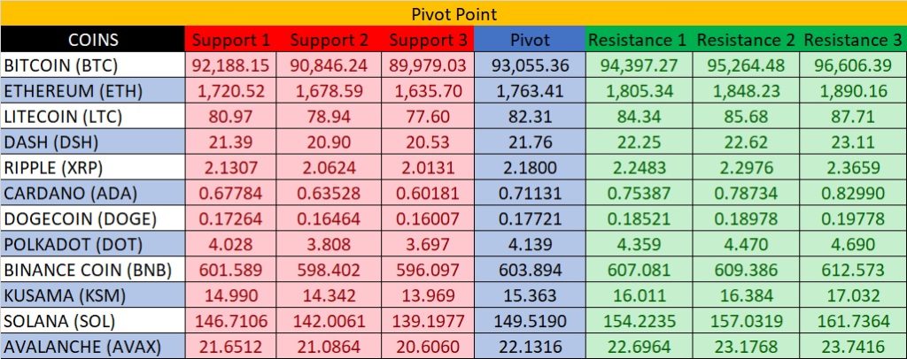 | Kusama (KSM) | 15.363 | 14.484 | 16.242 | UP | 74.46 | Overbought | SELL on Reversal |