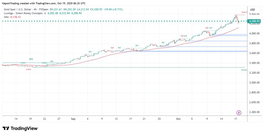 Trader teknikal sebaiknya memantau area 4.118–4.200, tempat SMA 50 dan order block terakhir bertemu. That’s where the next story might begin.