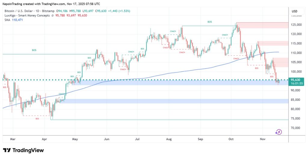 - Jika terjadi breakdown harian di bawah $94.000 → bearish continuation.
