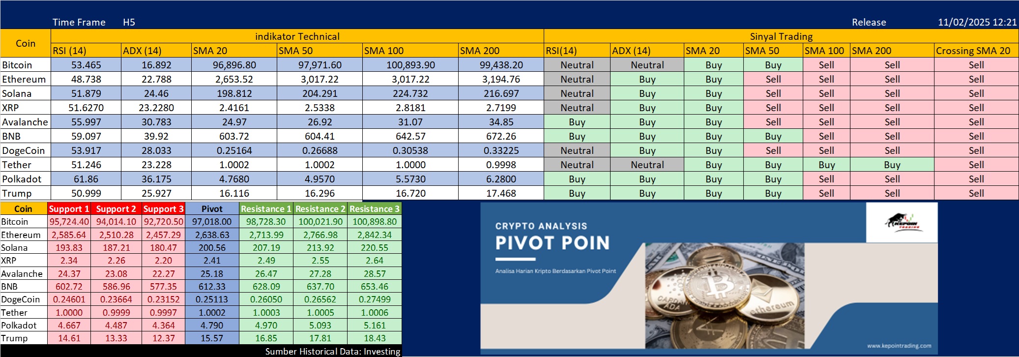 Laporan Analisa Teknikal Kripto (11 Februari 2025 – Time Frame H5)