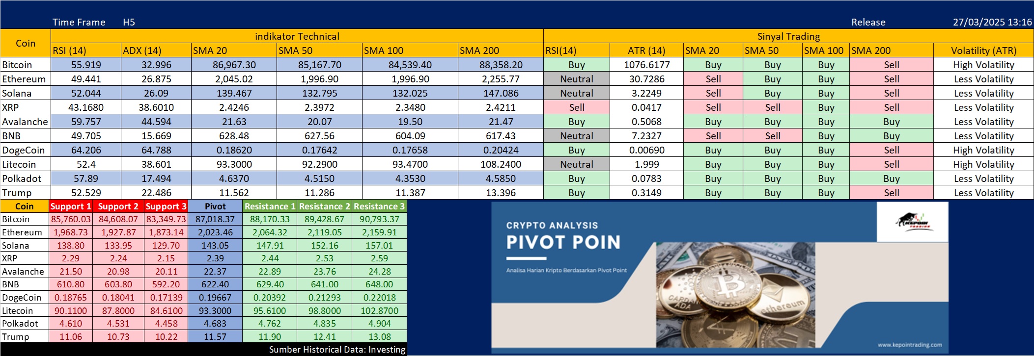 Laporan Analisa Teknikal 10 Aset Kripto – 27 Maret 2025 | Time Frame H5