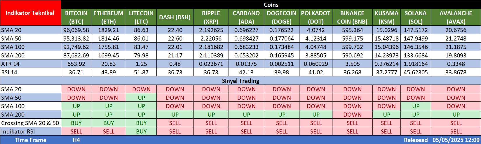 Gambaran Umum Pasar Berdasarkan data analisa teknikal pada timeframe H5, terdapat sinyal bearish di sebagian besar aset kripto, dengan indikator utama sebagai berikut: ✅ RSI […]