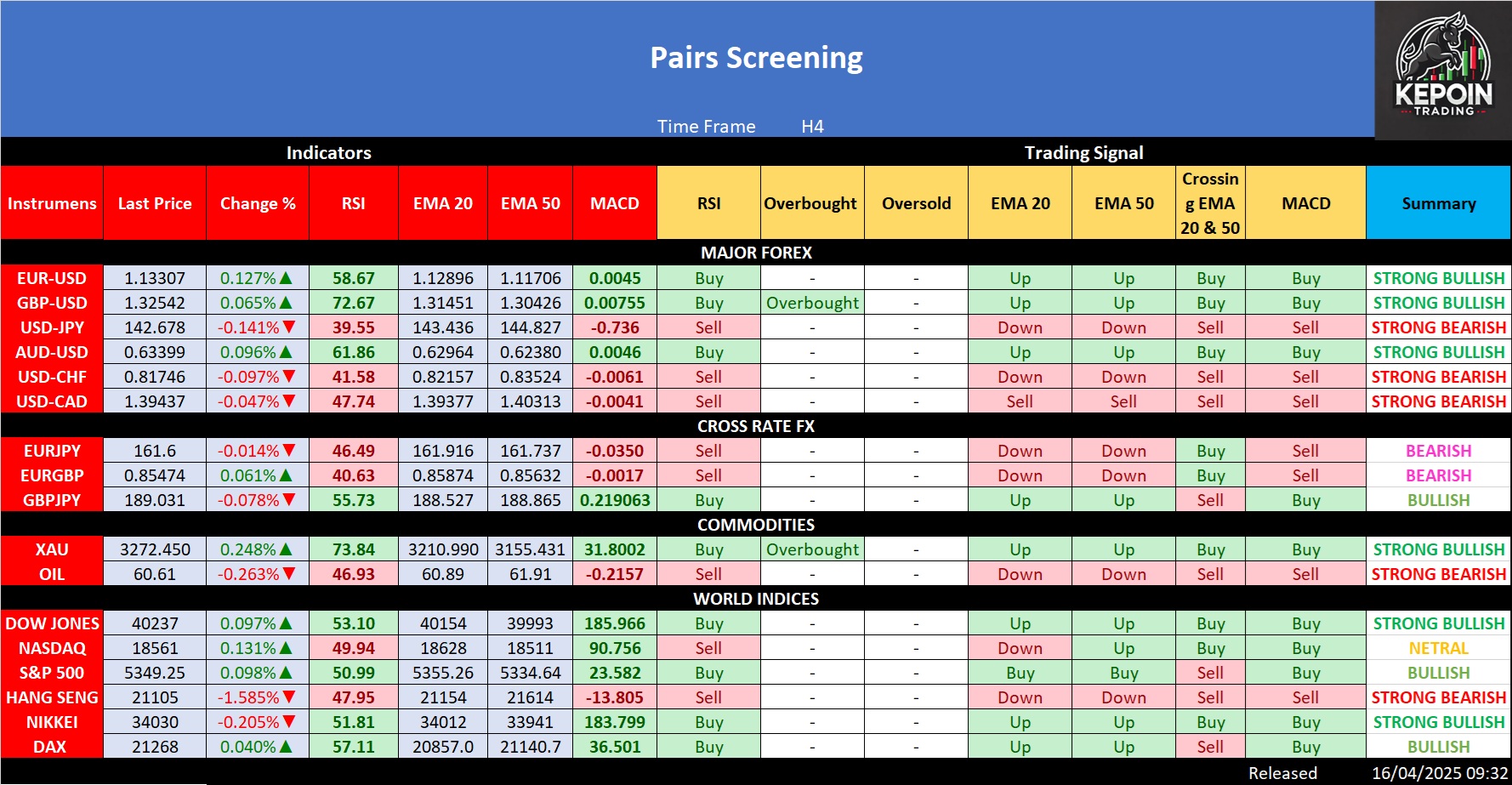 Laporan Analisa Teknikal Multi-Instrumen – 11 April 2025  | Time Frame: H4 (4 Jam)