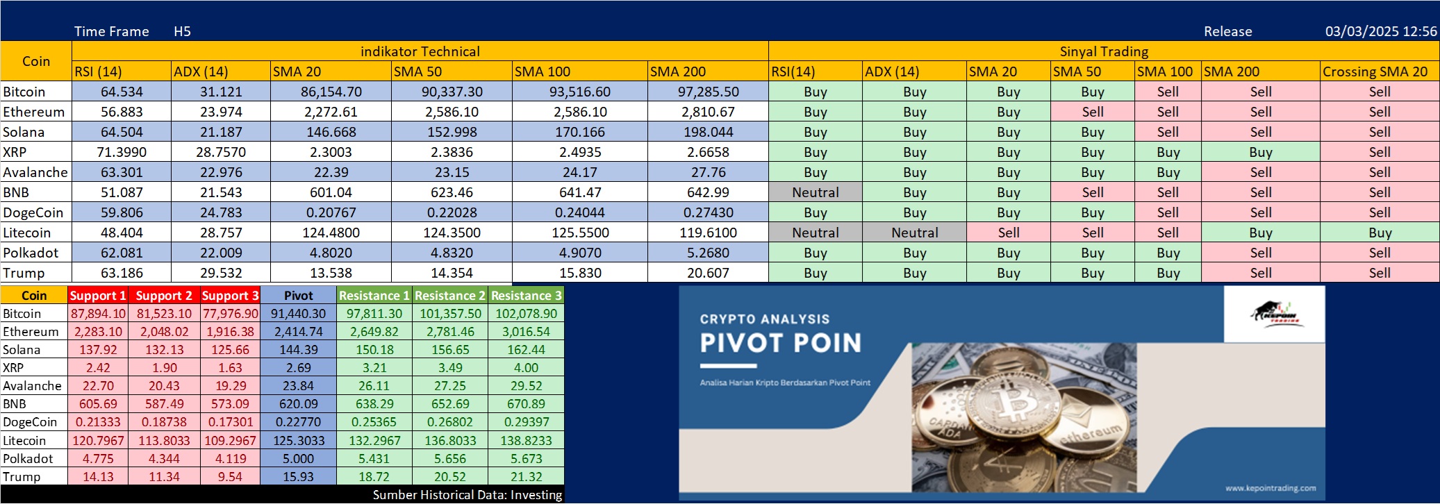 Data ini mencerminkan kondisi teknikal dari beberapa aset kripto berdasarkan indikator RSI, ADX, SMA, serta Pivot Point. Analisa ini memberikan gambaran mengenai tren harga dan […]